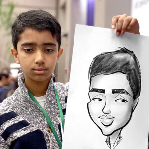 * Since they are affected by many factors, speeds can’t be guaranteed. Lots of shading (dark hair or beards), slow or talkative guests, writing names, and extra accessories like glasses and tiaras can slow drawing times.