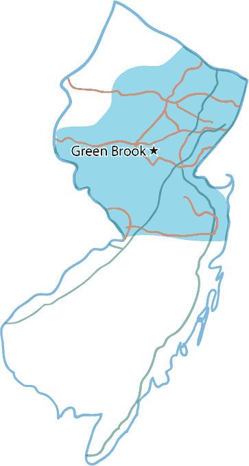 We are located in Green Brook, NJ, and we serve the highlighted areas in the map to the left.